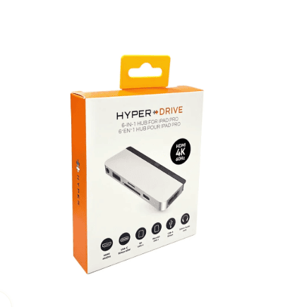 Hub USB Type C 6 En 1 Avec chargement USB C PD, HDMI 4K, USB 3.0, prise casque 3,5 mm, SD, micro SD – Compatible avec iPad Pro 2020 2019 2018 HyperDrive Silver