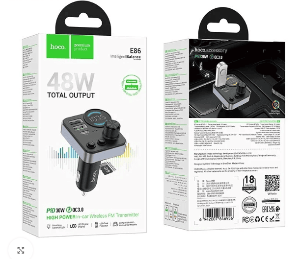 Transmetteur FM Bluetooth USB A+ USB C Auto 48W E86 Hoco