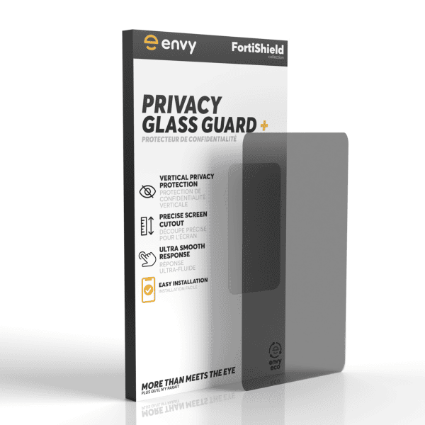 Protège vos informations personnelles, privées et sensibles des étrangers. L'écran n'est visible que pour les personnes directement devant l'écran. Les gens autour de vous ne verront rien et penseront que votre moniteur est éteint. Remarque : Lors de l'utilisation de la protection de la vie privée, la luminosité de l'écran de votre téléphone diminue. Il est recommandé d'augmenter la luminosité lorsque vous l'utilisez.