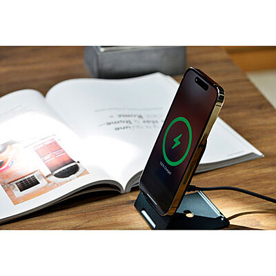 Ce support de chargement magnétique sans fil trois-en-un de 15 W d'Energizer est conçu pour vous permettre de recharger votre appareil rapidement et efficacement. Très polyvalent, cet accessoire permet de recharger un téléphone intelligent, des écouteurs sans fil et une montre Apple Watch en même temps. Le téléphone intelligent peut être placé à la verticale et à l'horizontale pendant le chargement, ce qui vous offre plus de commodité. Support de chargement sans fil trois-en-un pouvant recharger un téléphone intelligent, des écouteurs sans fil et une montre Apple Watch simultanément Conçu pour un chargement sans fil rapide, cet accessoire offre jusqu'à 15 W pour les téléphones intelligents, et 5 W pour la montre Apple Watch et les écouteurs sans fil Permet de positionner le téléphone intelligent à l'horizontale et à la verticale pendant le chargement Le voyant DEL vous donne un aperçu de l'état de chargement de votre téléphone La gestion PowerSafe protège votre appareil contre les courts-circuits, les surcharges, les surintensités et les décharges excessives
